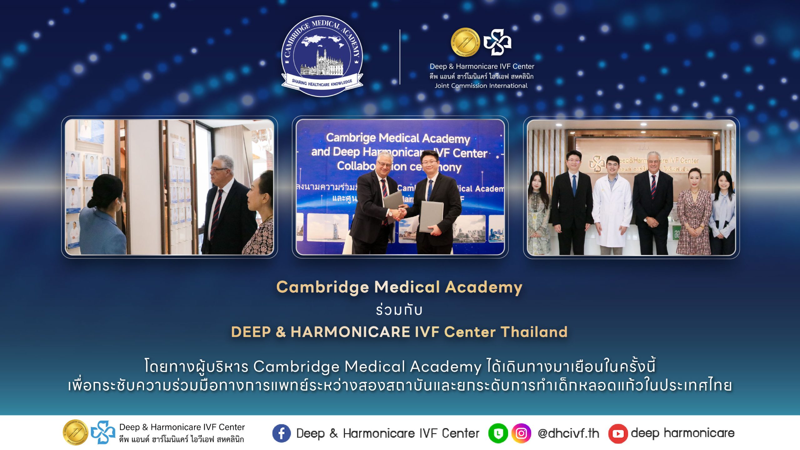 ความร่วมมือทางการแพทย์ระหว่าง DHC IVF Center Thailand และ Cambridge Medical Academy ในครั้งนี้ถือเป็นก้าวสำคัญ ของการบูรณาการองค์ความรู้ทางการแพทย์ระดับนานาชาติ ยกระดับมาตรฐานการทำเด็กหลอดแก้วในประเทศไทยให้ทัดเทียมระดับโลก และจะร่วมกันผลักดันการถ่ายทอดองค์ความรู้และข้อมูลทางการแพทย์ที่ล้ำสมัยให้เข้าถึงได้อย่างทั่วถึง พร้อมแบ่งปันข้อมูลด้านเวชศาสตร์การเจริญพันธุ์ที่ทันสมัยแก่ผู้ที่ประสบภาวะมีบุตรยาก โดยให้คำปรึกษาในรูปแบบการพบแพทย์โดยตรงและการให้คำปรึกษาผ่านระบบวิดีโอ เพื่อให้สามารถเข้าถึงข้อมูลและแนวทางการรักษาที่เป็นมาตรฐานสากล และช่วยเหลือผู้ที่มีภาวะมีบุตรยากให้บรรลุความฝันในการมีบุตรได้ในที่สุด