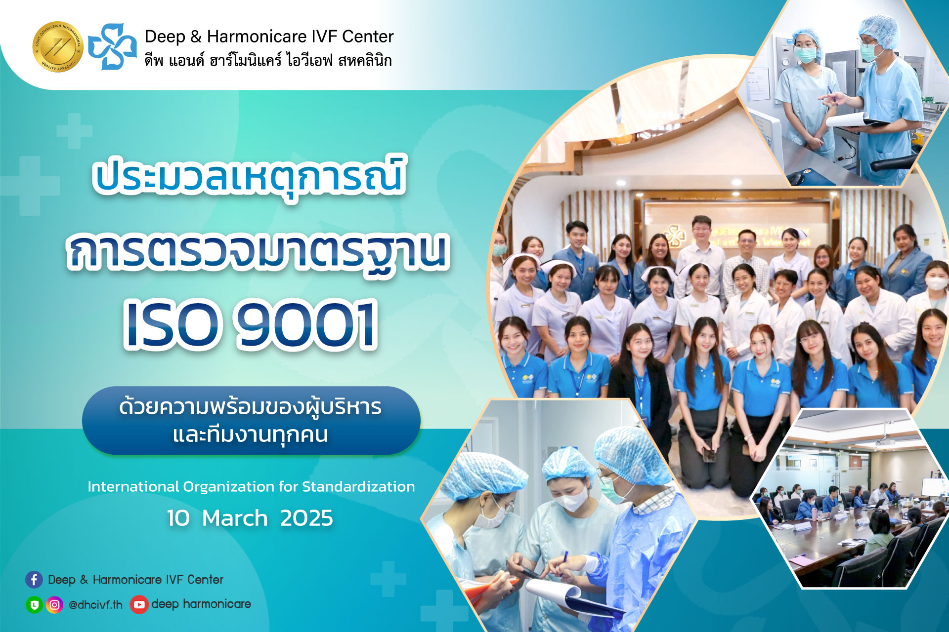 องค์กร ISO ได้เข้ามาตรวจสอบมาตรฐานที่คลินิก Deep & Harmonicare IVF Center ในวันที่ 10 มีนาคม 2025 ตั้งแต่เวลา 09.00 – 16.00 หลังจากที่องค์กร ISO ได้เข้ามาตรวจสอบมาตรฐานภานในคลินิก ทางคลินิก Deep & Harmonicare IVF Center ก็ได้ผ่านการรองรับมาตรฐานจากองค์กร ISO โดยทางองค์กรได้ใช้มาตรฐาน ISO 90001 เป็นเกณฑ์ในการวัดระดับคุณภาพภายในคลินิกของเรา